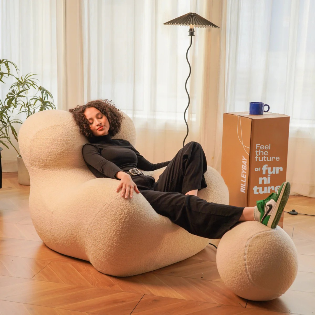 Upgrade your space with The Modern Lazy Lounge, a statement piece that blends sophisticated design and unmatched comfort. With its rounded, sculptural silhouette and luxurious materials, this chair is perfect for those who appreciate style without sacrificing relaxation. Whether placed in a living room, bedroom, or office, it adds a modern, cozy touch to any environment.