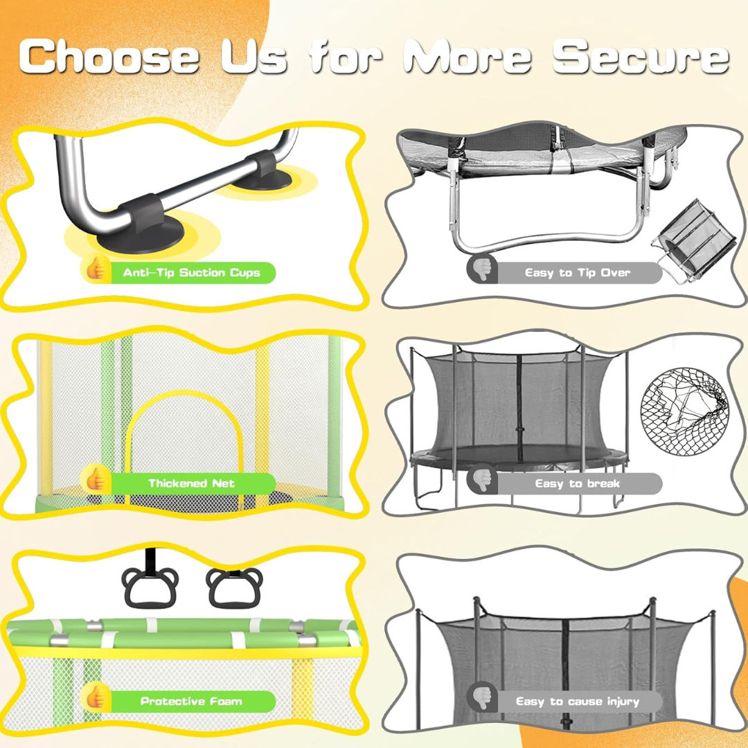 Designed with a 360° wrap-around safety pad, dense mesh netting, and upgraded foam, plus non-slip suction pads on sturdy U-shaped legs to ensure stable, quiet, and secure play.